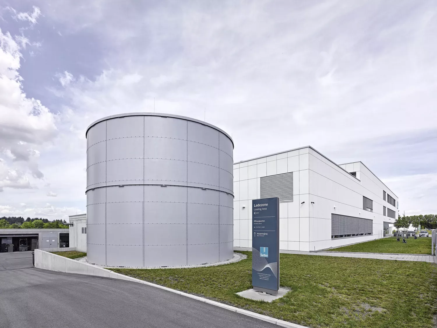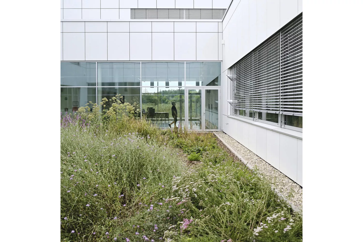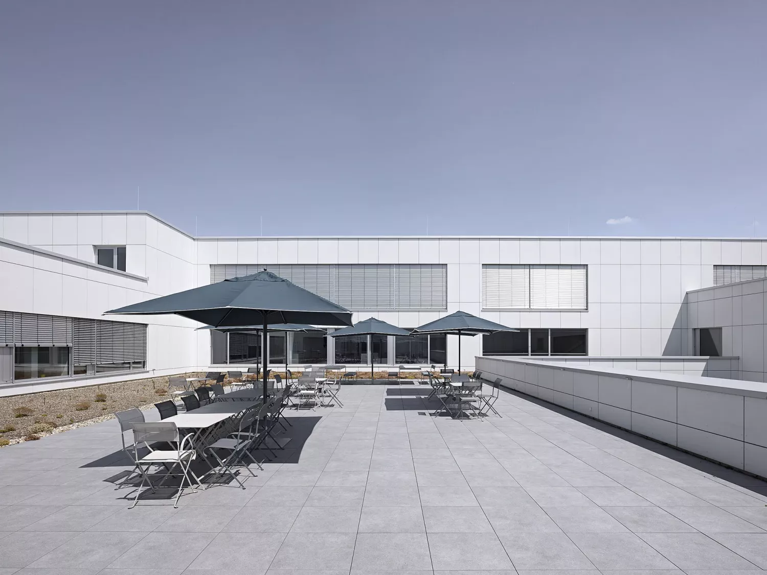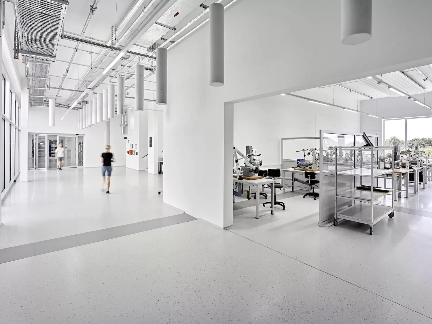 Neubau der Firmenzentrale mit Integration von Verwaltung, Entwicklung und Produktion in ein architektonisches Gesamtkonzept.