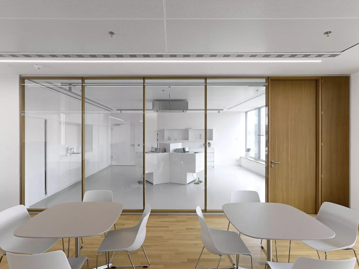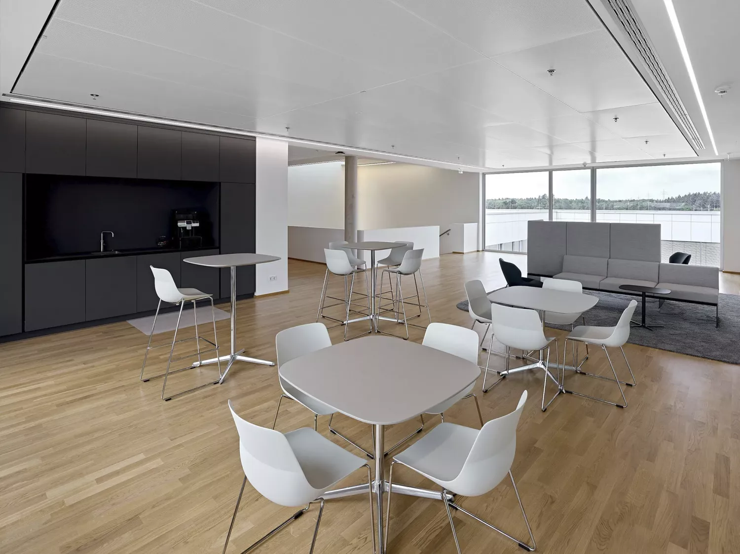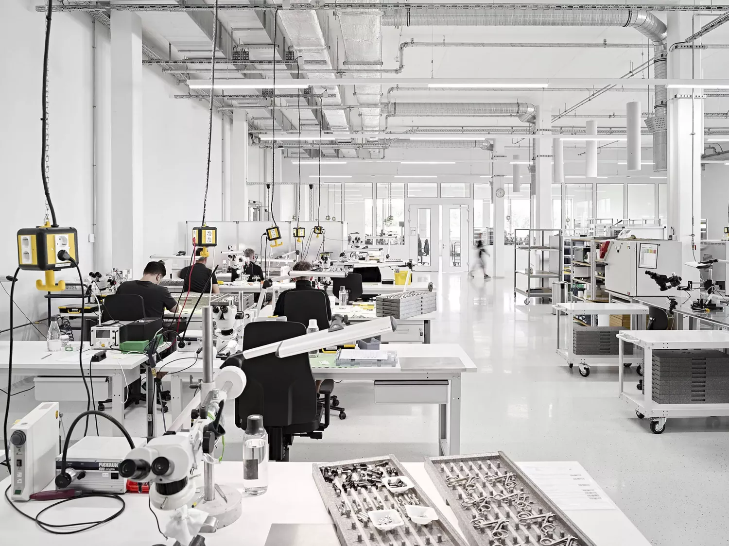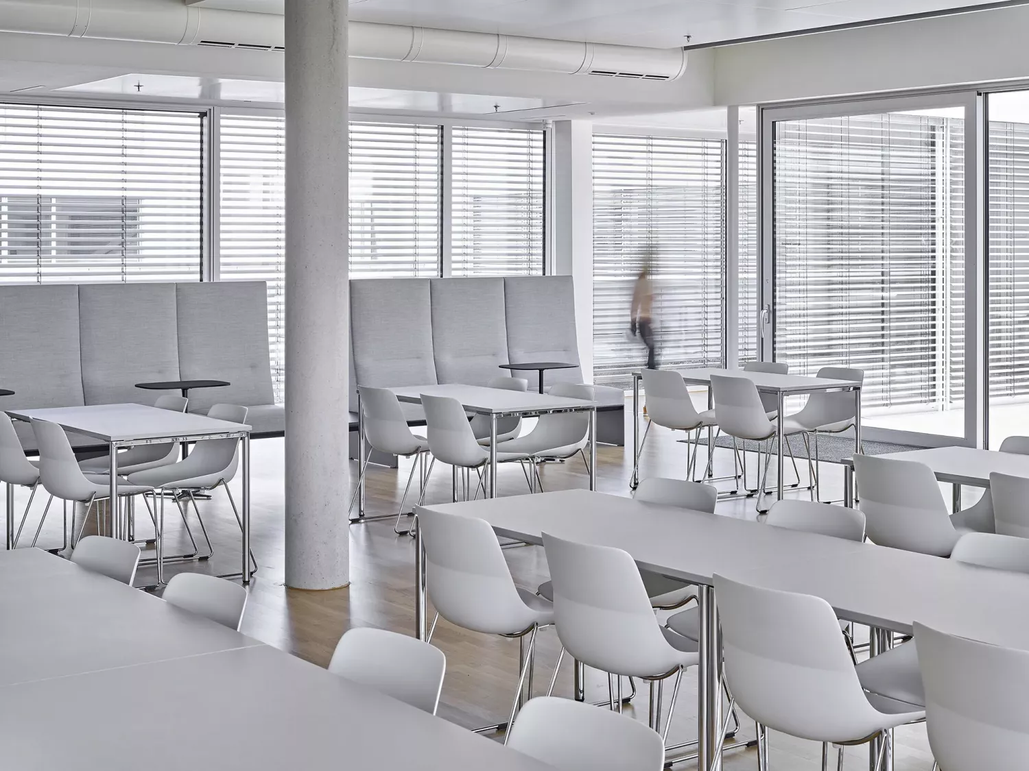 Neubau der Firmenzentrale mit Integration von Verwaltung, Entwicklung und Produktion in ein architektonisches Gesamtkonzept.