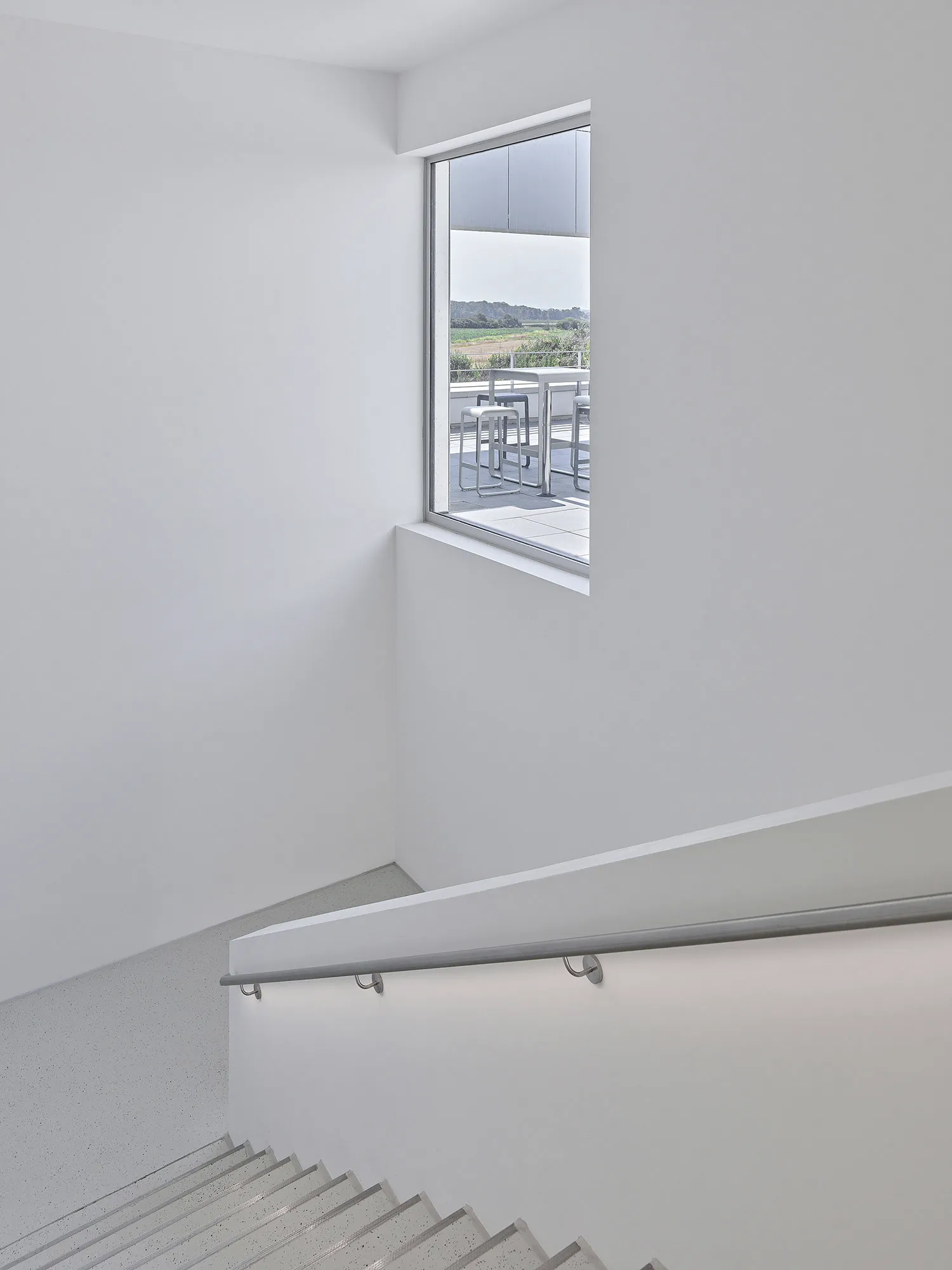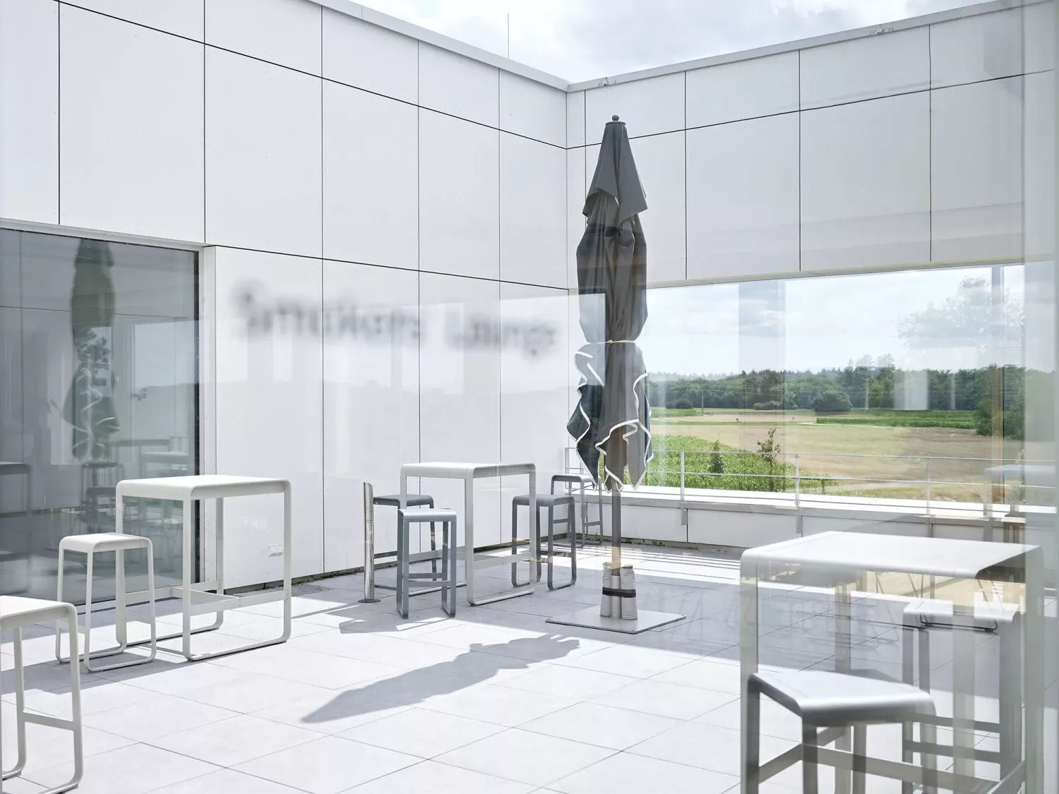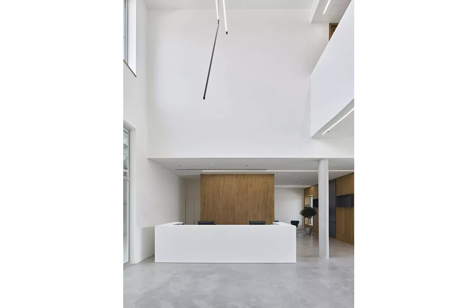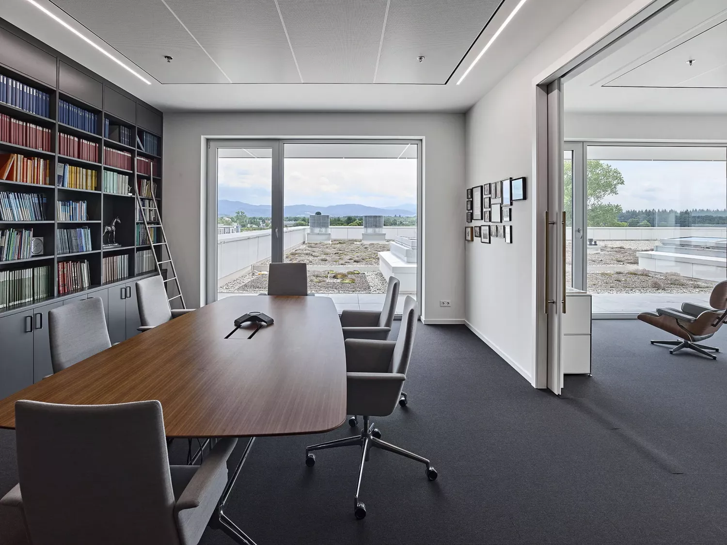 Neubau der Firmenzentrale mit Integration von Verwaltung, Entwicklung und Produktion in ein architektonisches Gesamtkonzept.