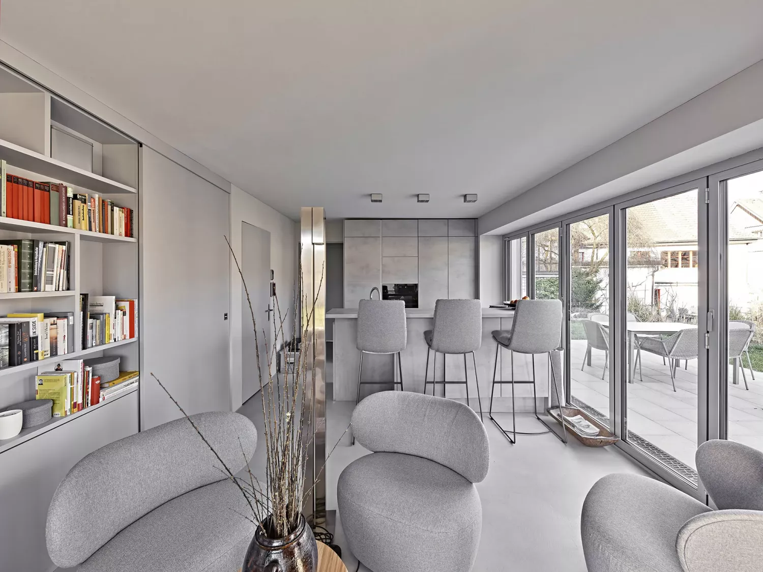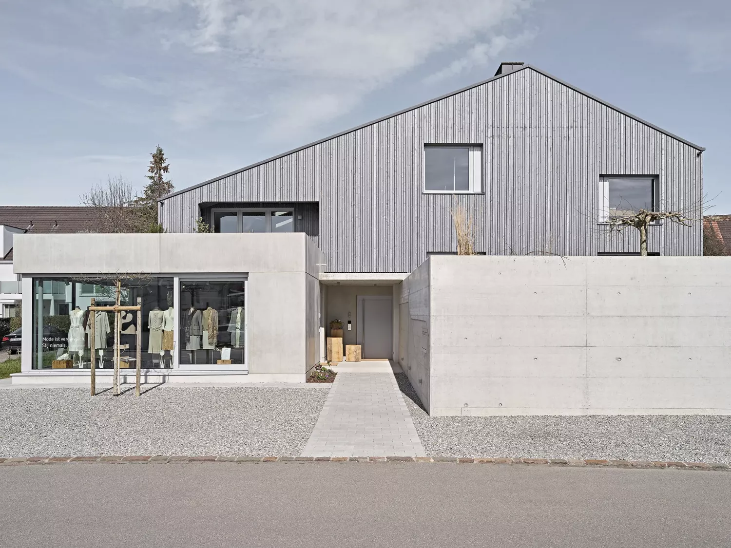 Umbau und grundlegende Sanierung des Bestands aus den 1970er Jahren in Wohnen, Office und Couture-Atelier. Umwidmung und Erweiterung der Garage zum Cubus, Umbau des Innenpools zur 2-geschossigen barrierefreien Einliegerwohnung mit Gästebereich.